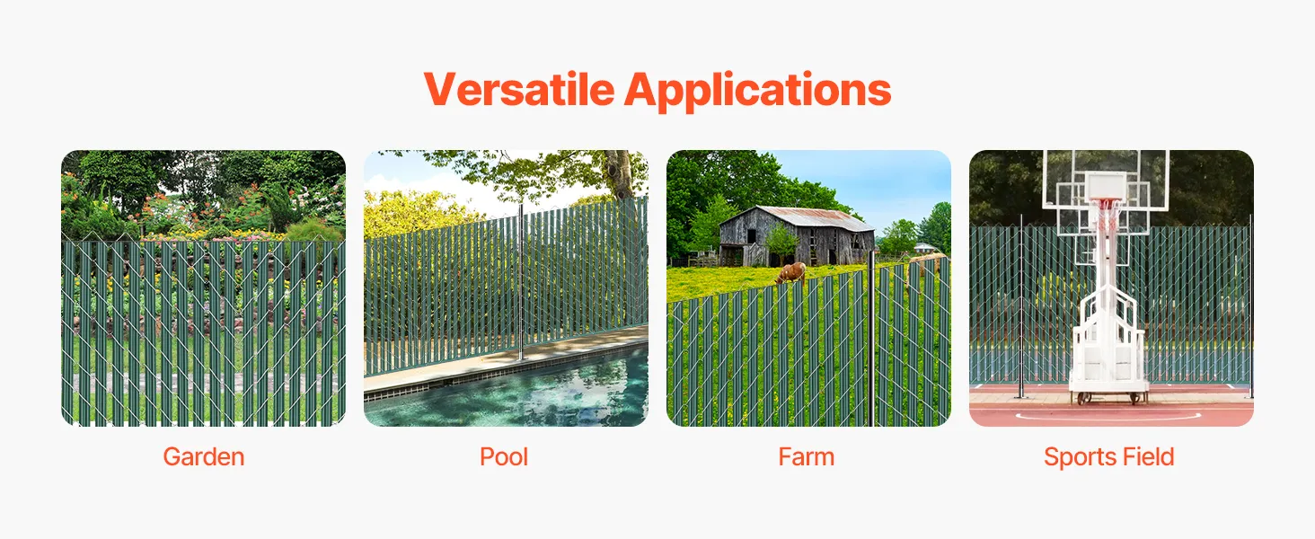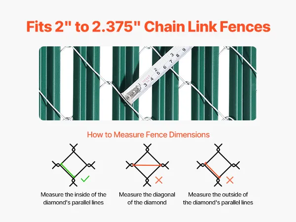 Enhanced Privacy: You can choose different levels of privacy protection based on your needs. The 2" chain link provides approximately 85% privacy, the 2-1/4" chain link offers around 80% privacy, and the 2-3/8" chain link provides about 75% privacy. Be sure to measure your chain link fence before placing an order to choose the suitable fence slats.