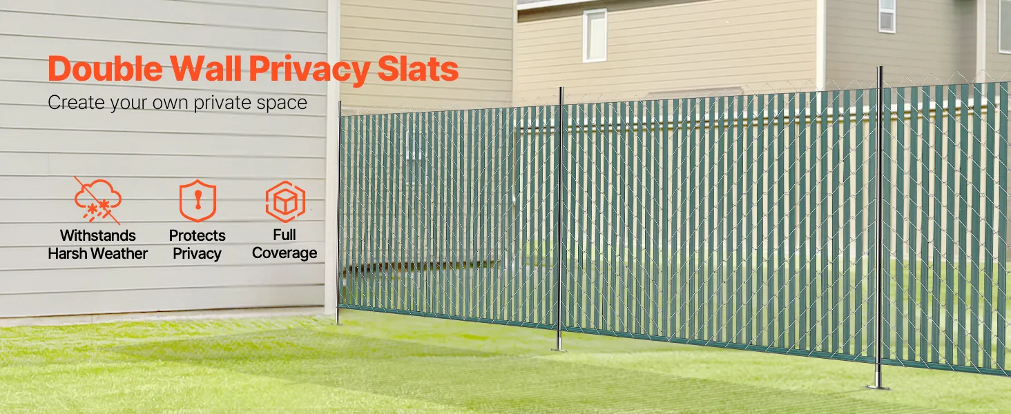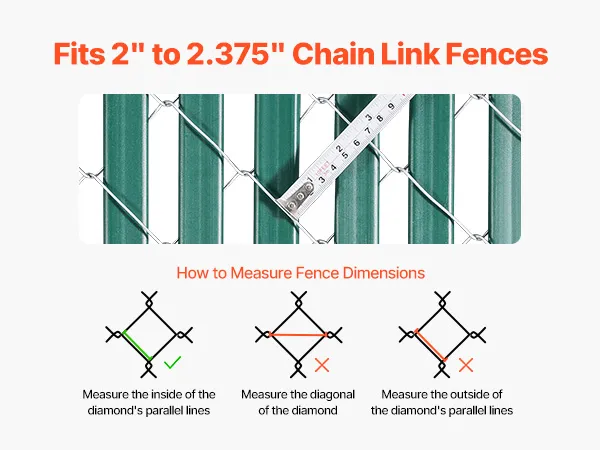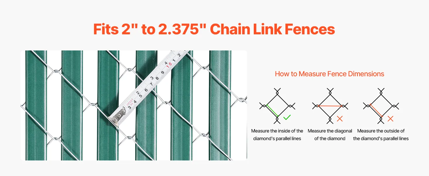 Enhanced Privacy: You can choose different levels of privacy protection based on your needs. The 2" chain link provides approximately 75% privacy, the 2-1/4" chain link offers around 70% privacy, and the 2-3/8" chain link provides about 65% privacy. Be sure to measure your chain link fence before placing an order to choose the suitable fence slats.
