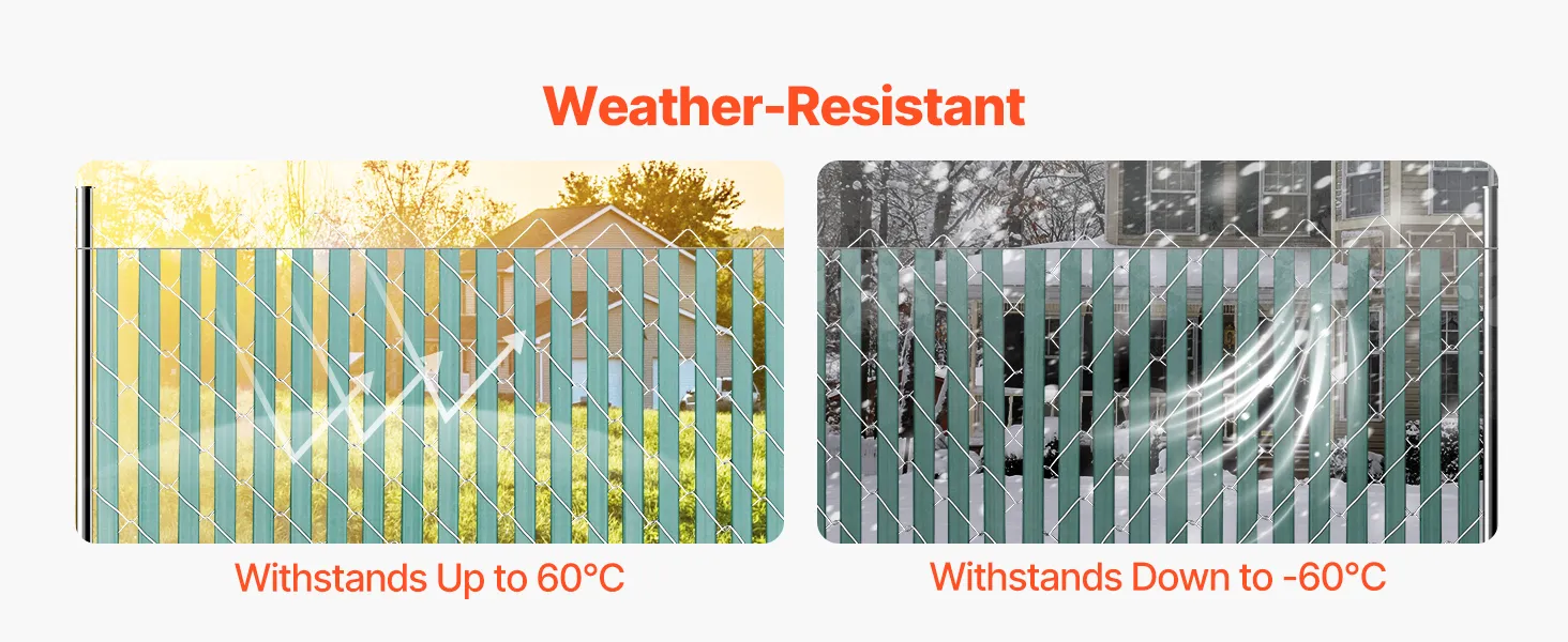 These chainlink fence privacy slats can effectively endures both high temperatures and cold environments. They not only block harmful sun rays but also remain stable and durable in low temperatures.