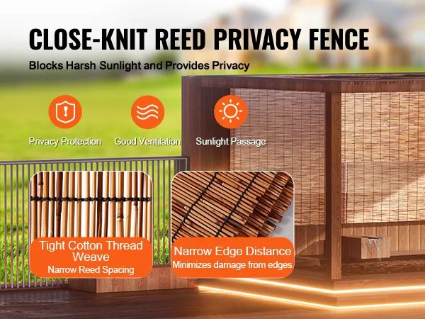 More Shade and Privacy: Tightly woven with cotton thread, our reed fence has very narrow gaps. It not only looks great and lasts long, but it also blocks harsh sunlight and prying eyes from neighbors. Light and air can still pass through, perfect for reading or other activities while keeping things breezy. The edges are tightly bound to prevent cracking, keeping your fence looking perfect.