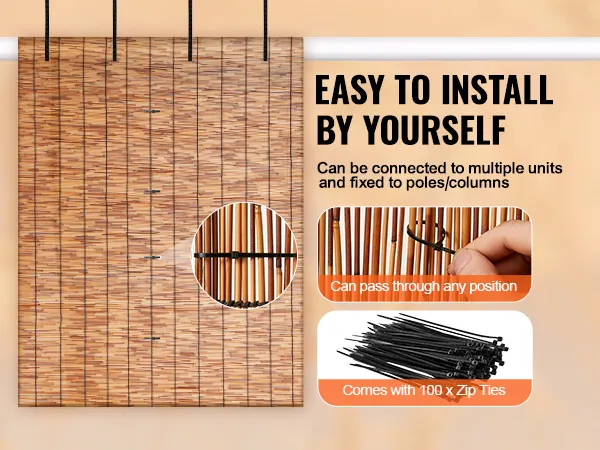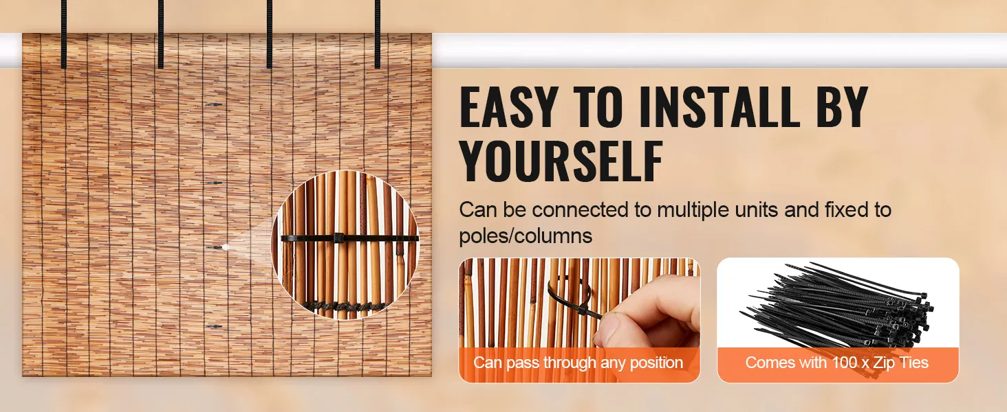 Installing our reed privacy screen is a breeze. No hammers or tools are needed—just use the included zip ties, and you're all set!