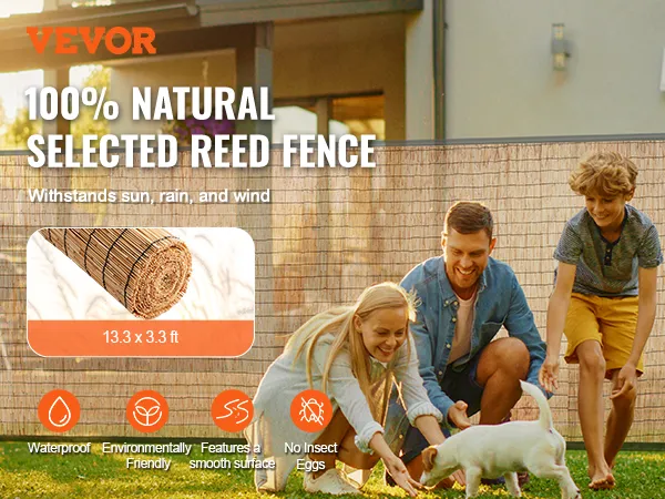 Puur natuurlijk riet: Onze rietomheining is gemaakt van hoogwaardig, volledig geschild natuurlijk riet. Het is schoon en glad, zonder overgebleven bladeren of twijgen. Bovendien bevat het geen wormeieren, dus je hoeft je geen zorgen te maken over rot. Dit rieten hekwerk is van nature waterdicht en extreem duurzaam, waardoor het een uitstekende keuze is voor jarenlang gebruik.