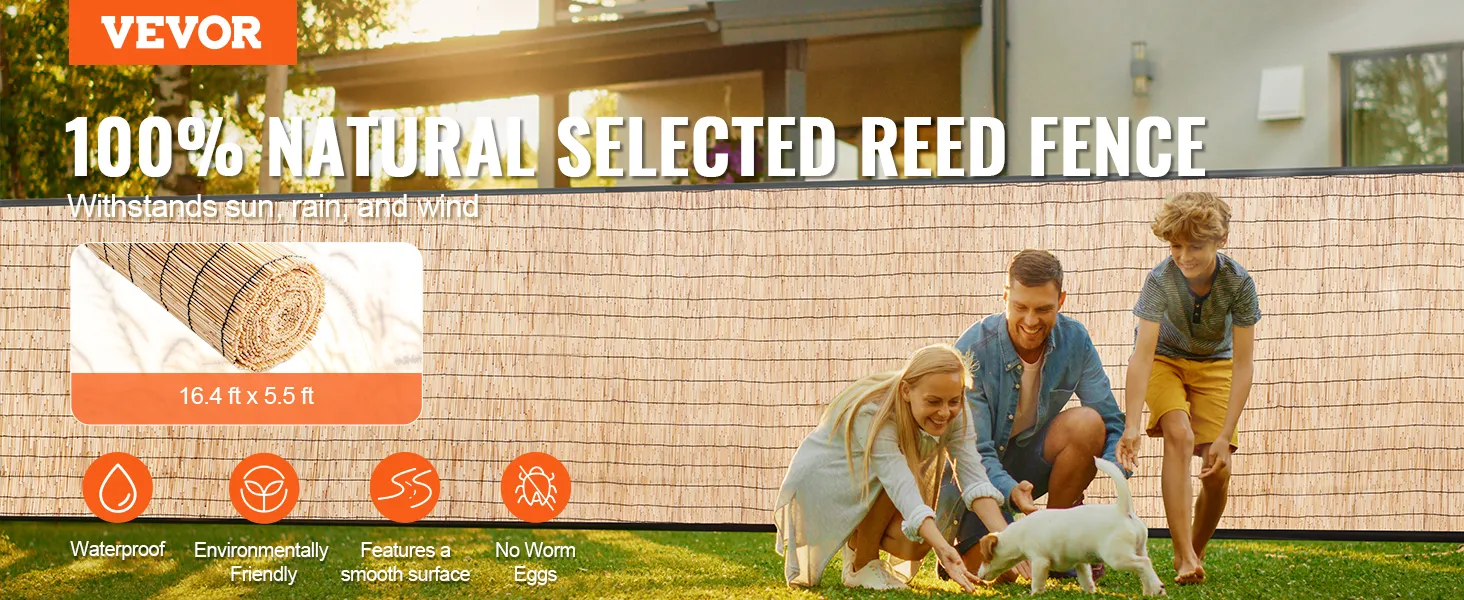 Pure Natural Reed: Our reed fencing is made from high-quality, fully peeled natural reeds. It's neat and smooth, with no leftover leaves or branches. Plus, no worm eggs, so you don't have to worry about rot. This reed fence is naturally waterproof and super durable, making it a great choice for years of use.