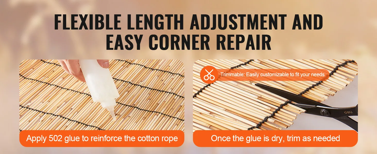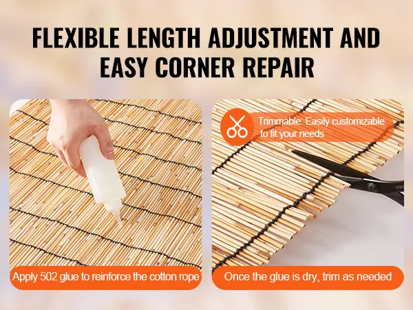 Flexible Cutting: Our flexible natural reeds can be cut to make the reed privacy fence more suitable for your home and more adaptable for decoration. Just apply some strong glue to the cut area, let it dry, and trim as needed. Easy and flexible!