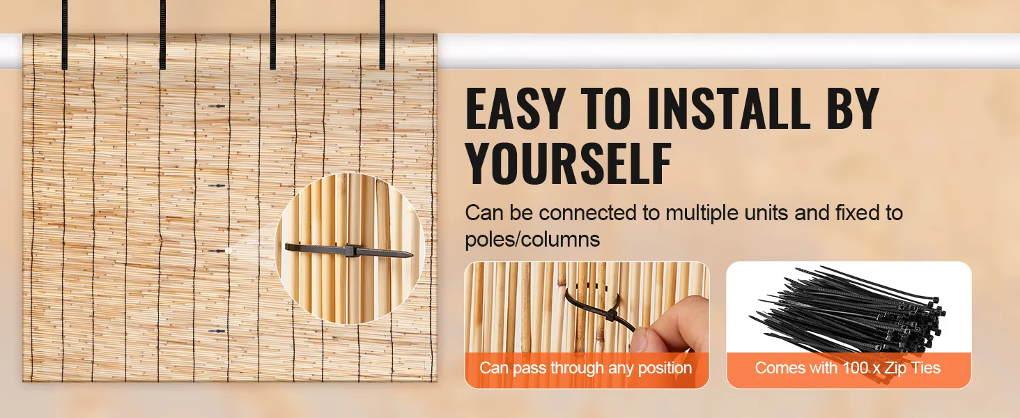 Installing our reed privacy screen is a breeze. No hammers or tools are needed—just use the included zip ties, and you're all set!
