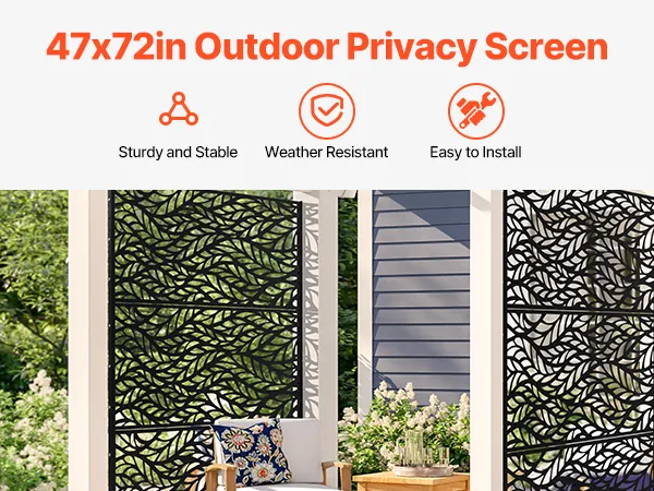 This 47x72 in metal privacy screen is corrosion-resistant and durable, ideal for long-term outdoor use. With wind resistance, it's ideal for gardens, patios, and courtyards, offering both privacy and style. It can also be used indoors to divide spaces, providing versatile, elegant separation.