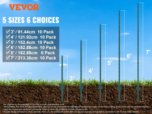 Productspecificaties: Onze hekpalen zijn verkrijgbaar in lengtes van 3ft (91,44 cm) en elke verpakking bevat 10 palen.