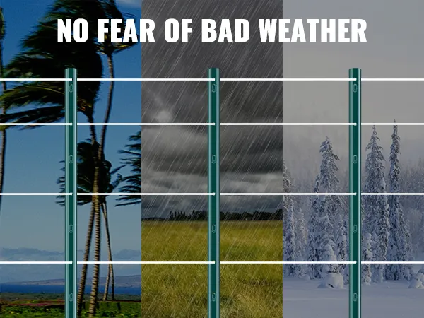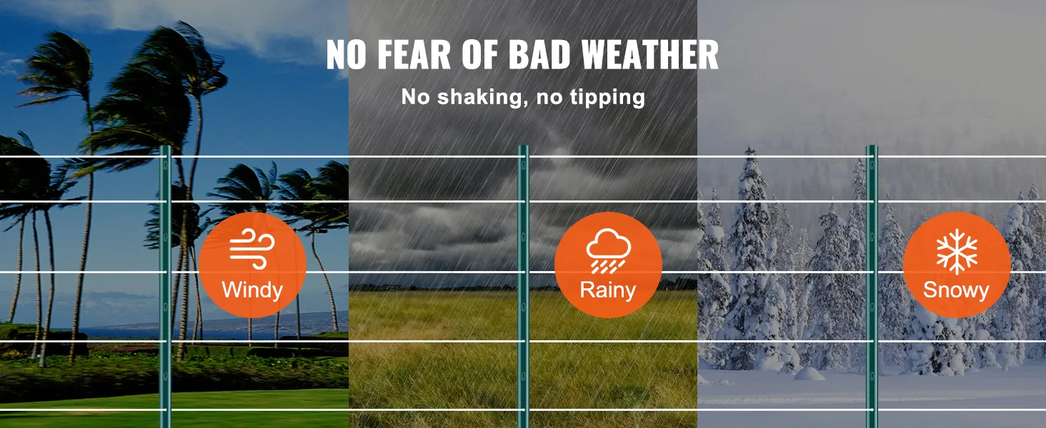 De metalen schuttingpaal blijft stabiel onder alle weersomstandigheden, inclusief wind, regen en sneeuw. Het zorgt ervoor dat uw tuin, tuin of huis het hele jaar door beschermd is, zonder dat u zich zorgen hoeft te maken dat de paal gaat zwaaien of omvallen.