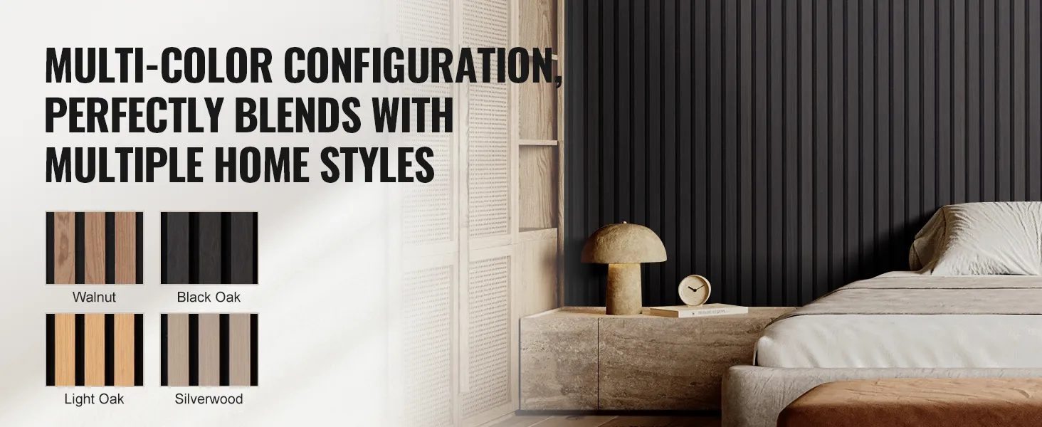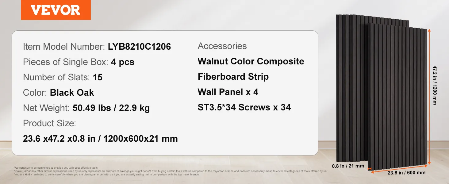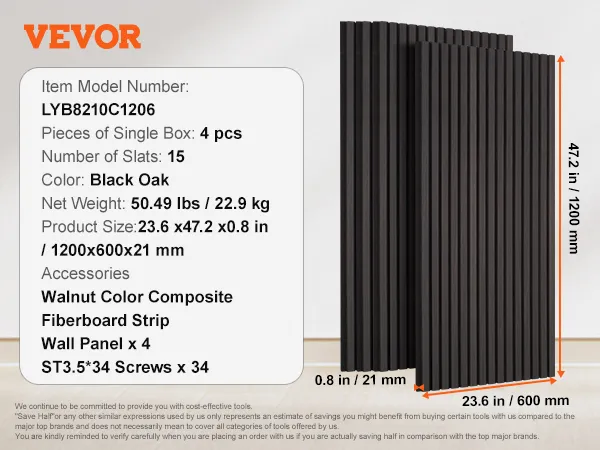 VEVOR Wood Slat Acoustic Panels, 23.6 x 47.2 inch, MDF Accent Wooden Wall Panels for Modern Interior Wall Decor, Faux Wood Wall Board Panels for Noise Reduction, Black Oak