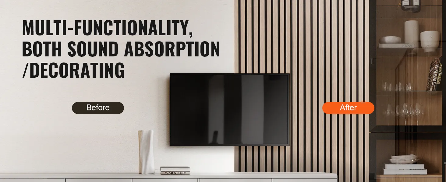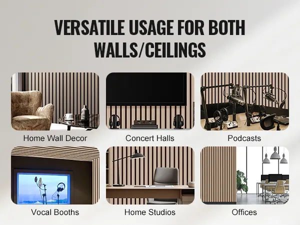 • E0 Grade MDF Strips: These acoustic wall panels feature a three-layer structure, combining wood grain laminate, MDF material, and high-density polyester fiber. With formaldehyde emissions meeting E0 standards and a Class A fire rating, they ensure a safe and eco-friendly usage experience.