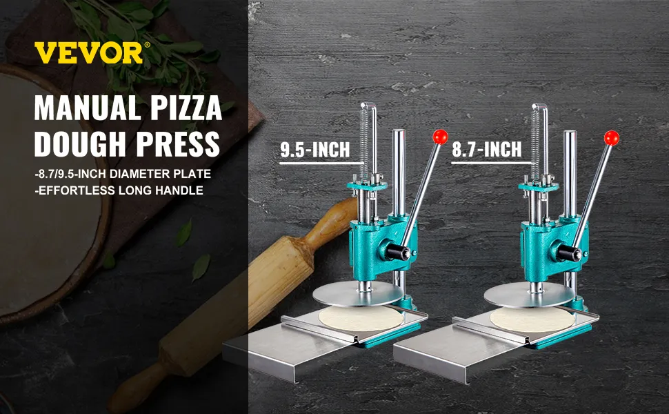 Kom eens goed kijken naar onze verbeterde handmatige pizzadeegpersmachine. Deze tool is voornamelijk ontworpen om deeg in verschillende diktes vellen te persen volgens uw eigen behoeften. Daarom, als u het beu bent om zelf deegvellen te maken of een klein bedrijf wilt runnen dat veel deegvellen nodig heeft, is deze machine uw beste keuze.
