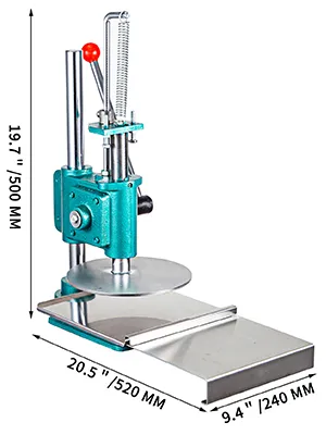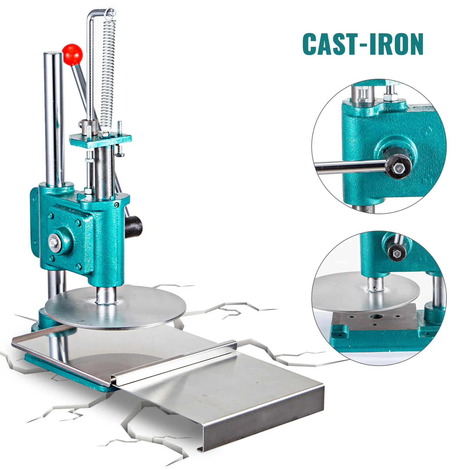 De ronde persplaat van roestvrij staal 304 van voedingskwaliteit, samen met een diameter van 220 mm (8,7") en een dikte van 12 mm (0,5"), kan het deeg snel platdrukken tot een licht vel.