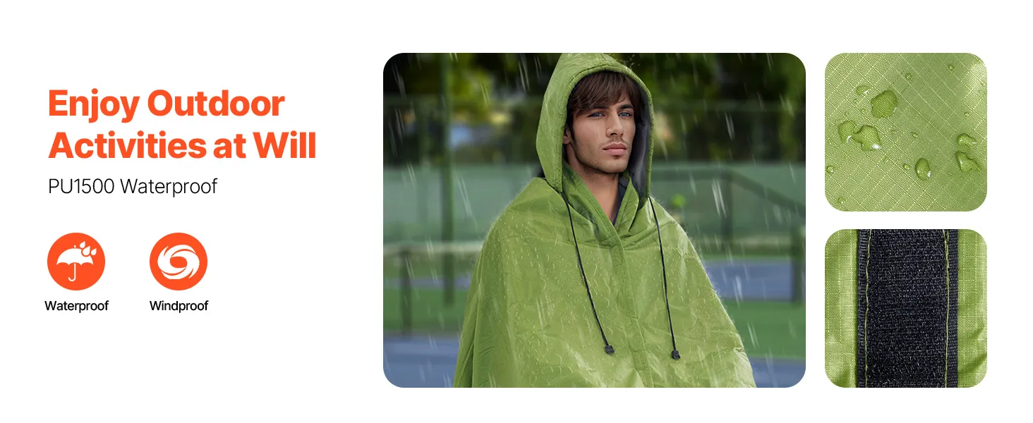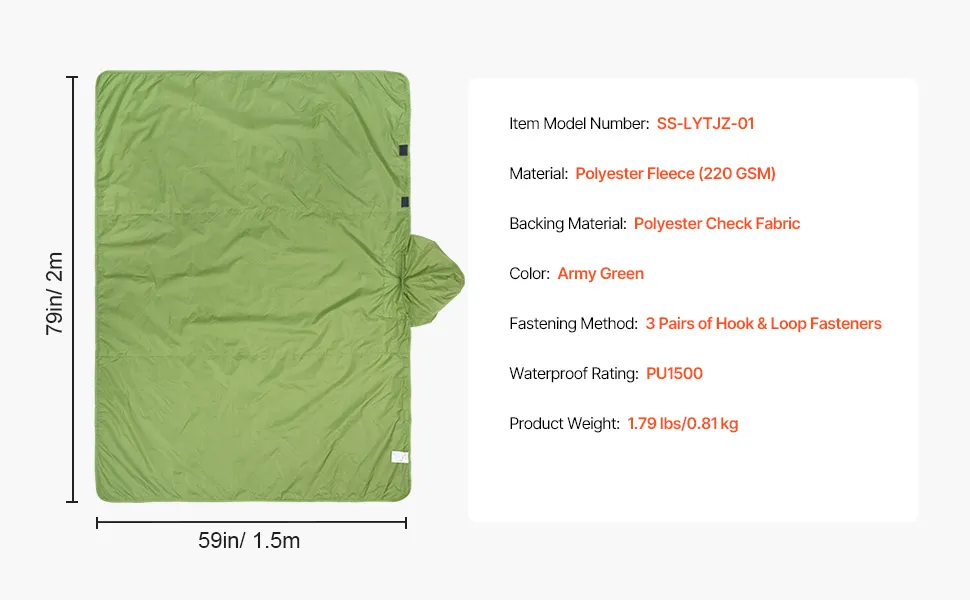 Transform your camping experience with this camping blanket, which can easily turn into a cozy cloak or a rain poncho. Made of soft 220GSM polyester fleece, it offers outstanding windproof and waterproof performance. Measuring 79" x 59", it's also lightweight and easy to store.