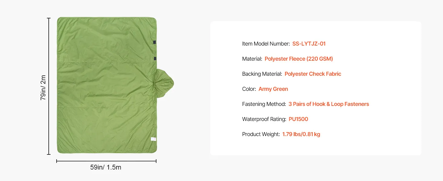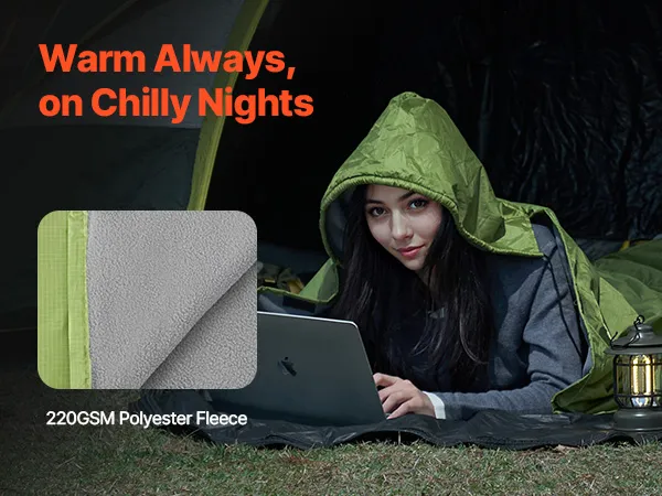 Wearable Design: Featuring 6 hook & loop fasteners, this blanket can transform into a warm outdoor cloak that shields you from the wind and cold. Plus, it frees your hands, making you stay warm while organizing your gear or preparing meals on car camping trips