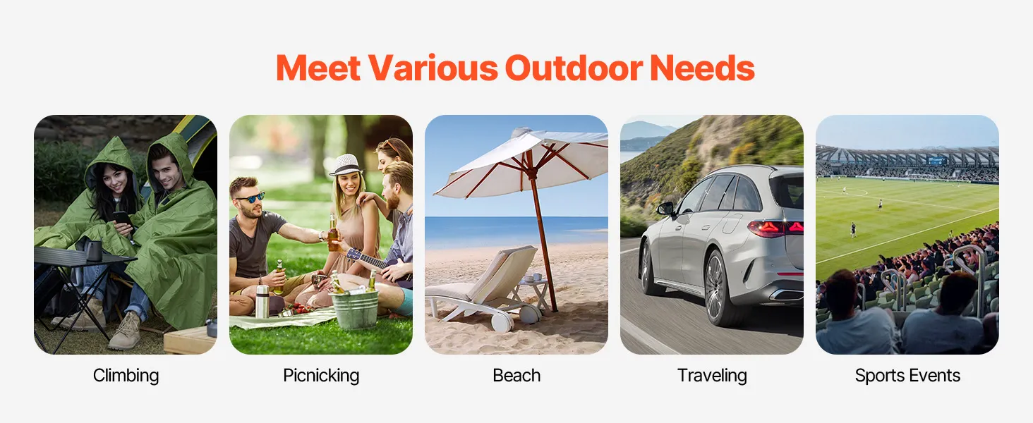 Waterproof Fabric: Made with PU1500 waterproof polyester, this camping blanket keeps you dry in wet weather. Whether you're lounging on the beach, relaxing on the grass, or at an outdoor event, it prevents water from seeping in, ensuring you stay comfortable throughout your adventure.