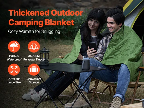 Of je nu kampeert, picknickt, naar het strand gaat of een sportevenement aanmoedigt, deze warme kampeerdeken is je alles-in-één metgezel voor elk buitenavontuur.