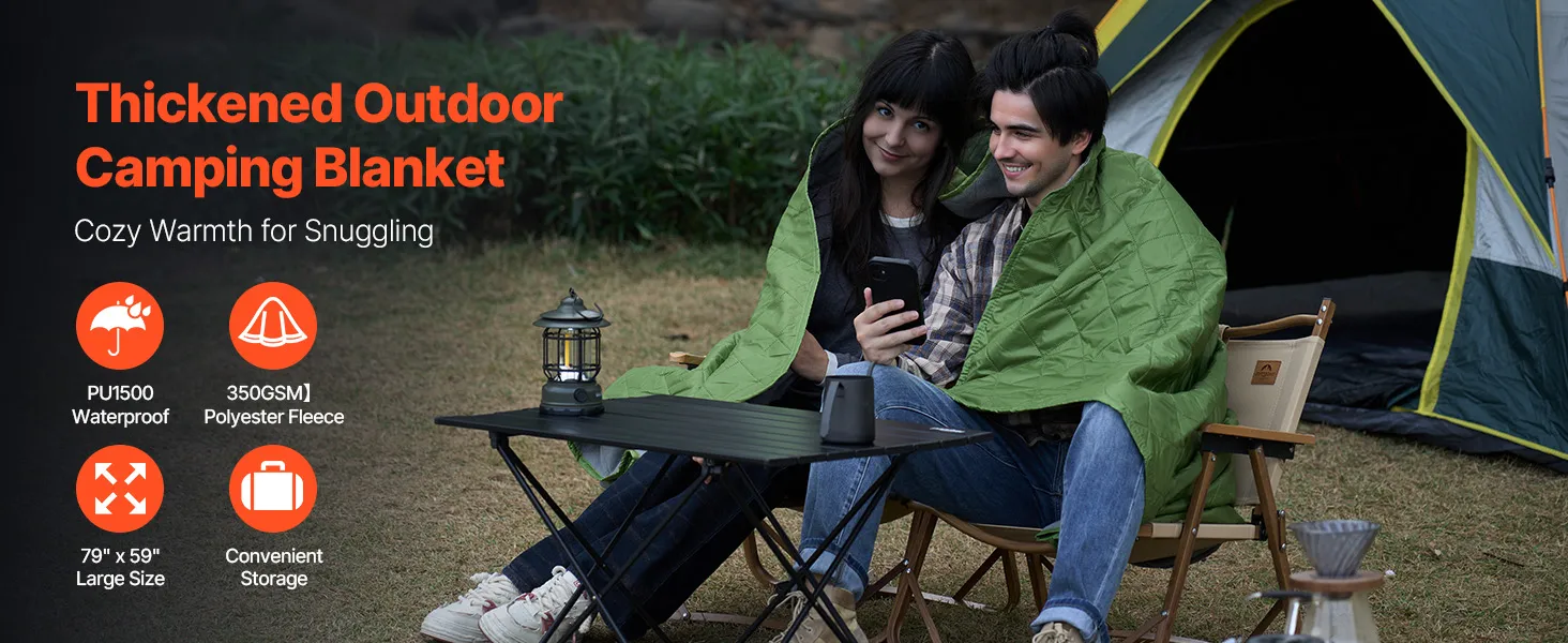 VEVOR Campingdeken 2,08 x 1,4 m, Grote warme stadiondeken, Water- en winddicht, 330 g/m² polyester fleece, Vlamvertragend, Ideaal voor buiten, picknicks, wandelen, sportevenementen, reizen, Tweekleurig