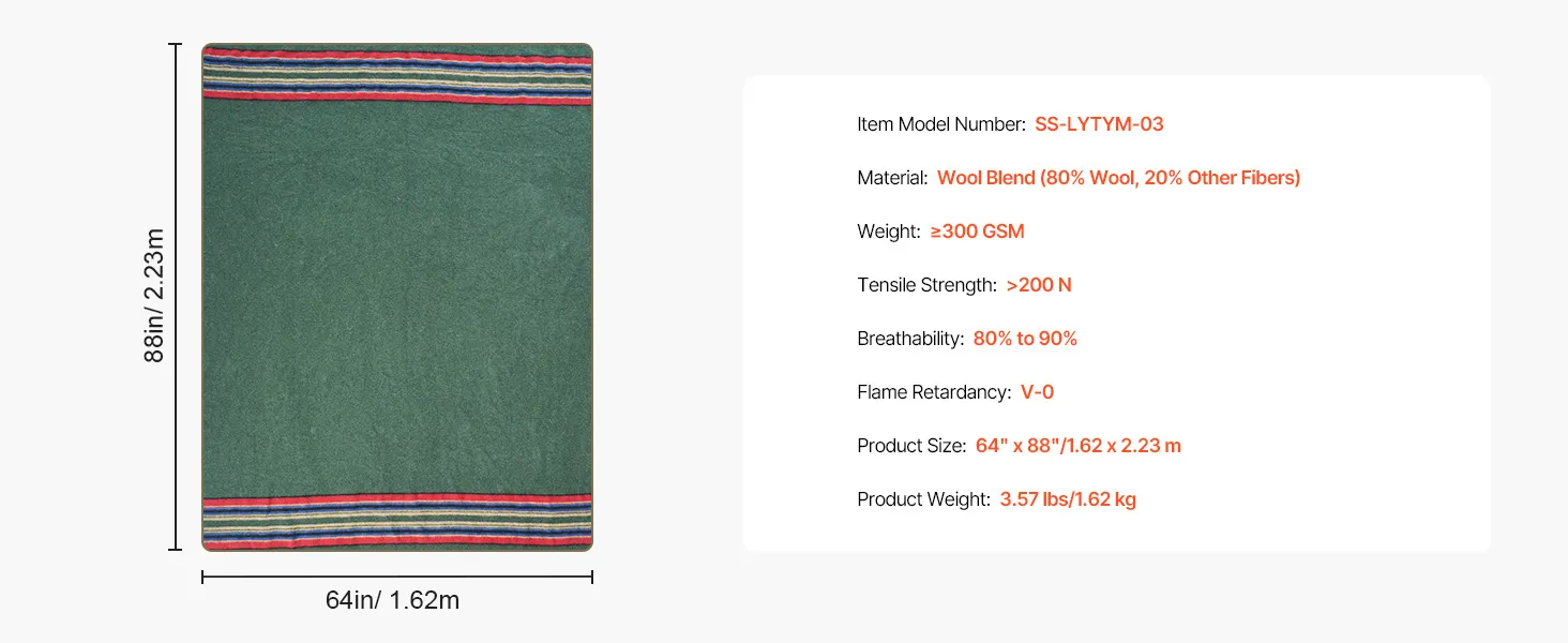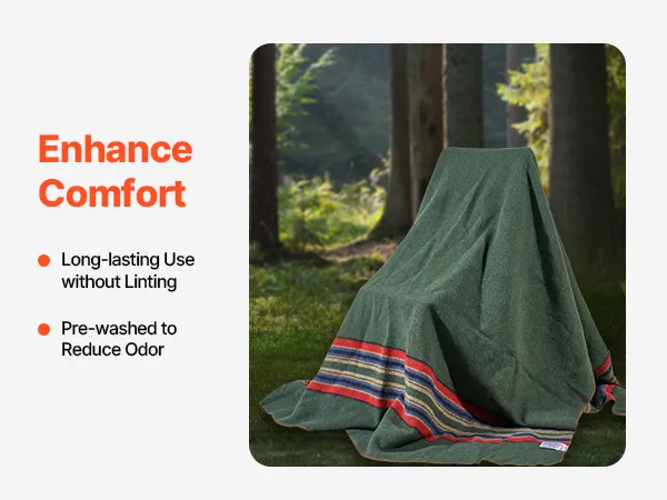 Gezellige wolmix: Gemaakt van 80% wol en 20% polyestermix met een gewicht van ≥ 300 GSM. Deze kampeerdeken is warm en duurzaam en geschikt voor buitenactiviteiten bij koud weer, zoals skiën, krabben vangen of ontspannen bij het kampvuur.