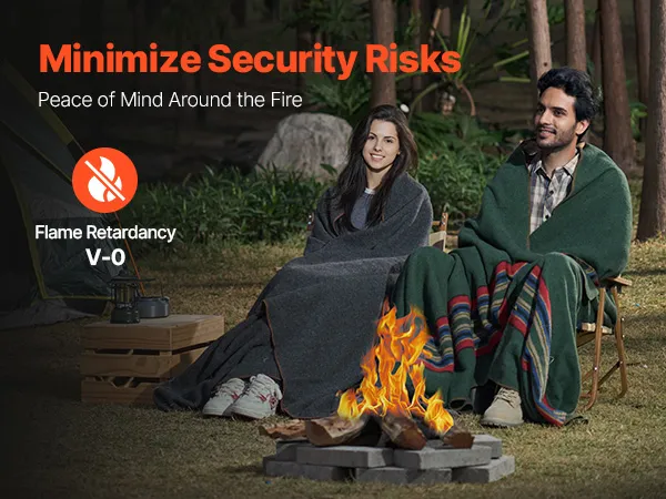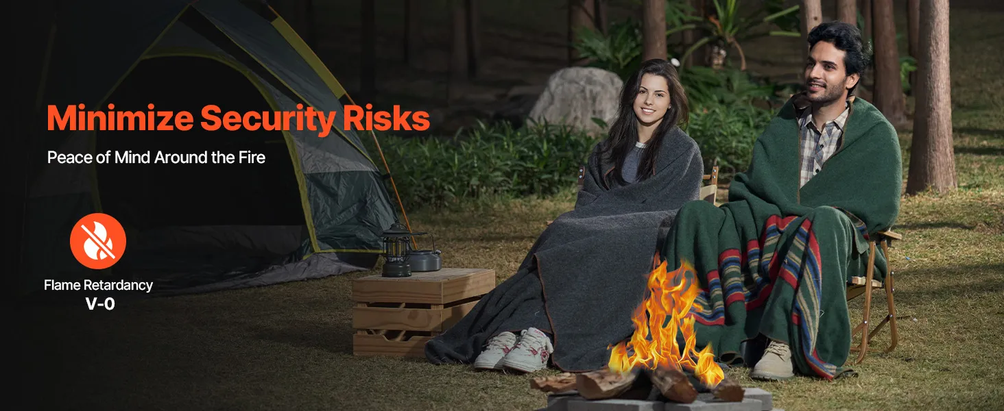 Veiligheid staat bij ons voorop. Onze wollen kampeerdekens voldoen aan de UL94 V-0-normen. U kunt ze veilig gebruiken rond het kampvuur of de barbecue in de buitenlucht, voor een zorgeloze kampeerervaring.