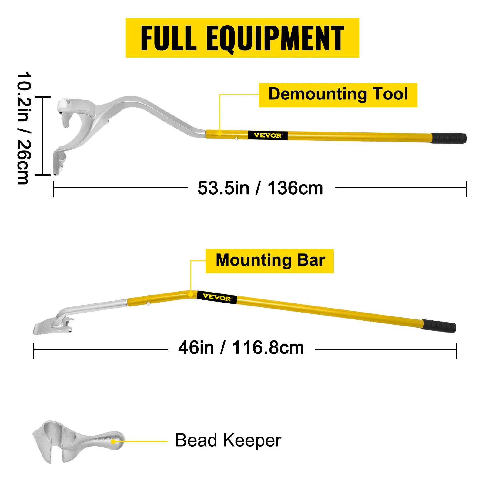 DRIE STUK BANDENVERWISSELGEREEDSCHAP: Met een 46" (116,8 cm) montagestang, een 53,5" (136 cm) verwijderingshulpmiddel en een hielbeschermer, kunt u een tubeless band in minder dan 8 seconden demonteren en opnieuw installeren in minder dan 20 seconden. De bandenwisselaar helpt je bij het eenvoudig en snel monteren en demonteren van banden. Raak niet in paniek als uw banden lek raken of beschadigd raken. Met onze wisselaar bent u zo weer op weg.