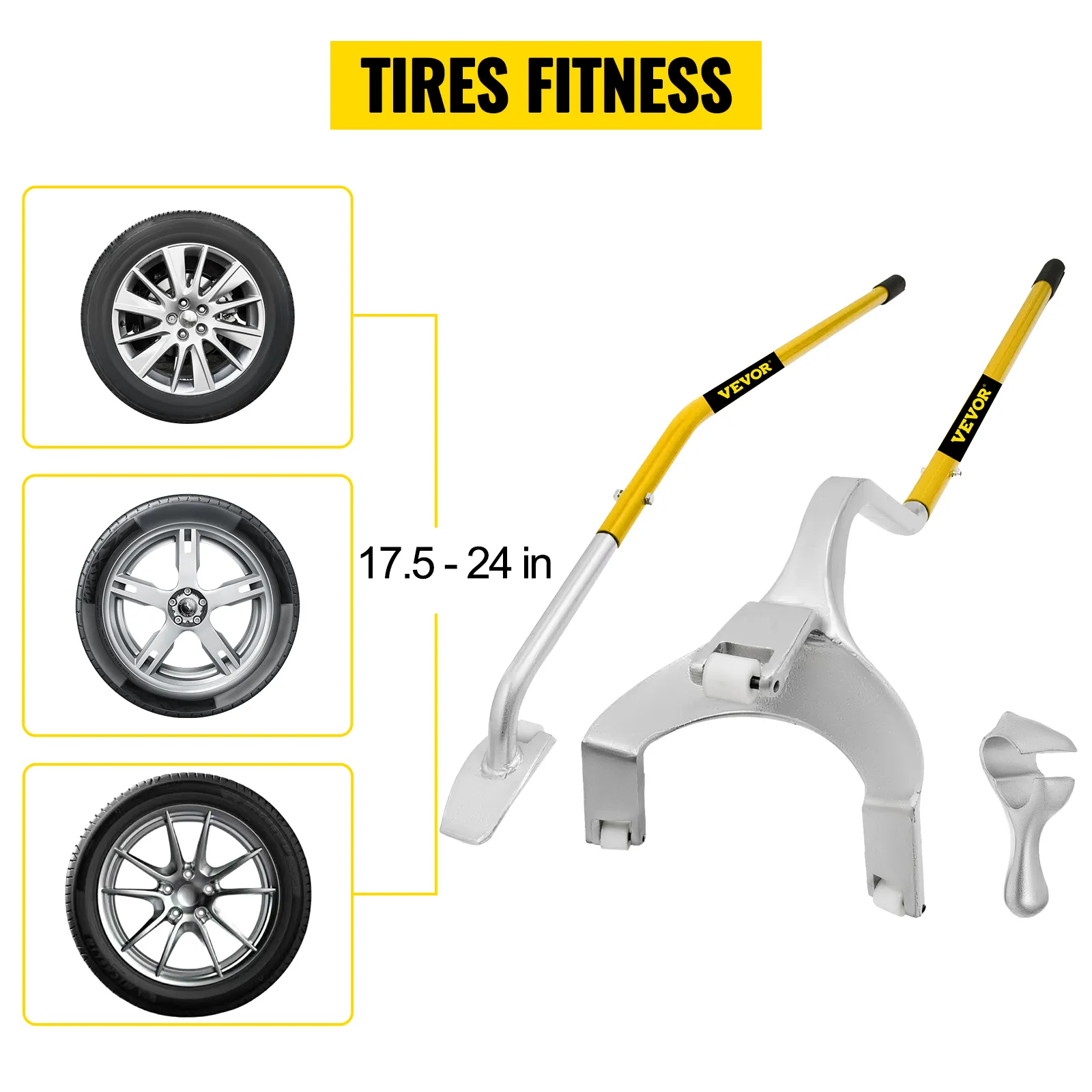 Deze bandenwisselaar is ontworpen voor banden met een diameter van 17,5-24 inch (44,4-61 cm). Het past op de meeste banden op de markt.