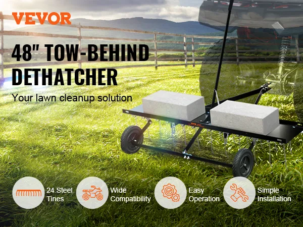 Deze verticuteermachine is compatibel met verschillende ATV's en maaiers. Hij kan worden bevestigd aan verschillende soorten apparatuur. Daarom is hij veelzijdig voor verschillende behoeften. U kunt hem gebruiken met uw bestaande maaier of ATV. Dit bespaart u de kosten van de aanschaf van nieuwe apparatuur in de toekomst. De compatibiliteit bespaart u de aanschaf van nieuwe apparatuur. U kunt dus eenvoudig wisselen tussen verschillende machines. Dat maakt het een veelzijdig hulpmiddel voor gazononderhoud. Het gebruiksvriendelijke ontwerp betekent dat u niet alles meteen hoeft uit te zoeken.