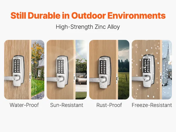 Duurzaam zinklegeringmateriaal: de grendel is gemaakt van hoogwaardige zinklegering en voorzien van een corrosiebestendige galvanische laag. Dit mechanische combinatieslot zonder sleutel is ontworpen om bestand te zijn tegen zware weersomstandigheden. Het is roest- en waterbestendig en zorgt voor betrouwbare beveiliging in alle seizoenen, van koude winters tot hete zomers en regenachtige dagen