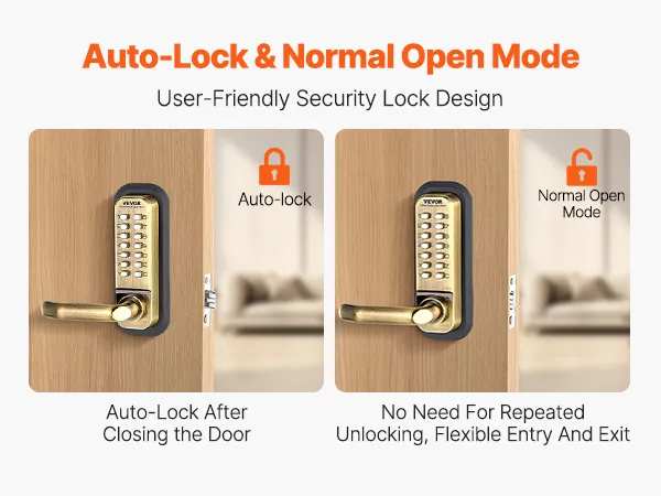 Automatic Locking & Hold-Open Mode: This mechanical combination door lock automatically engages when the door is closed, so you won't have to worry about forgetting to lock it. The hold-open mode is ideal for areas with frequent access, providing convenient entry and exit