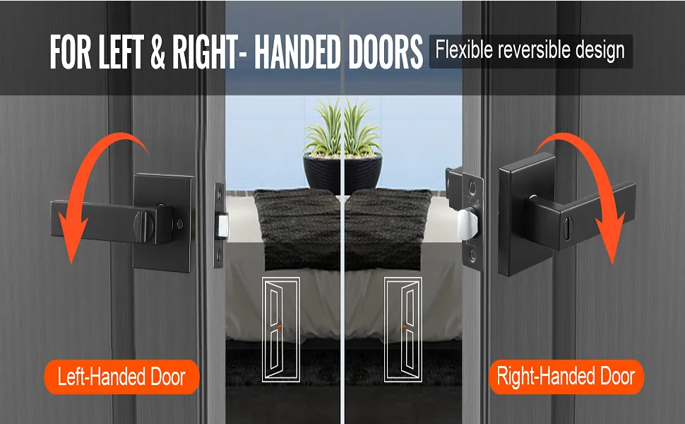 Universal & Reversible Design: Our black door lever comes with an adjustable latch of 2-3/8 inches(60mm) or 2-3/4 inches(70mm), suitable for doors with thickness ranging from 1-3/8 inches(35mm) to 1-3/4 inches (45mm). The reversible design allows installation on both left and right-handed doors, making it suitable for over 95% of interior doors