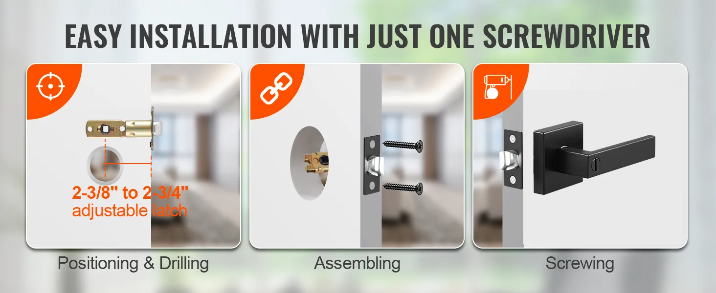Easy Installation: Installing our lever door handle is a breeze with just 4 steps. You can set it up in minutes using only a screwdriver, even if you have no prior experience. No special tools are required—perfect for anyone
