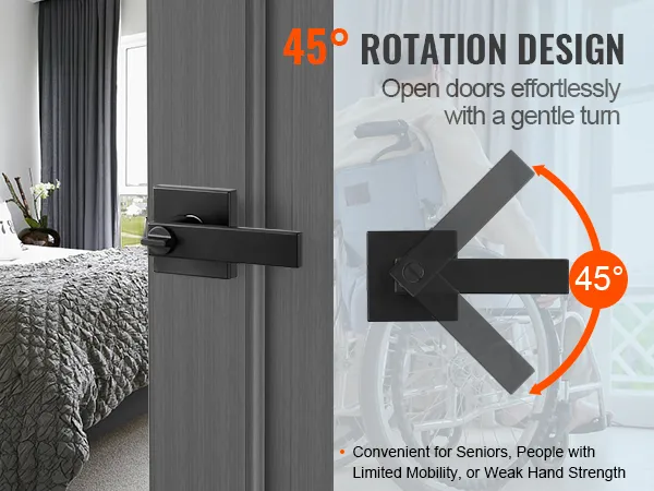 45° Rotation for Effortless Opening: Swift door access with a mere 45° turn demands less effort than conventional 90° handles. This interior door handle is perfect for tight spaces and is particularly convenient for those with limited mobility