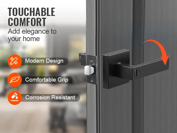 Our black door lever is designed with a locking function to protect your privacy from the inside. It comes with a 2-3/8 inches or 2-3/4 inches adjustable latch, suitable for doors with thickness ranging from 1-3/8 inches to 1-3/4 inches. Compatible with over 95% of interior doors.