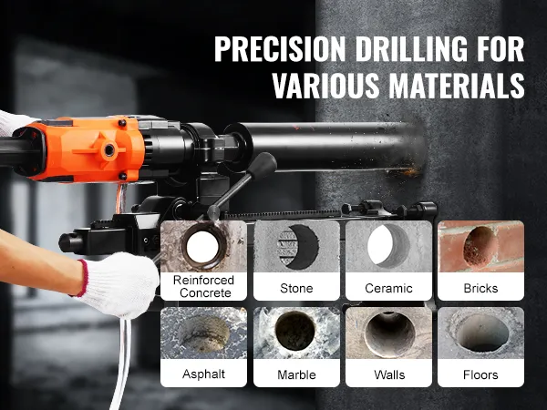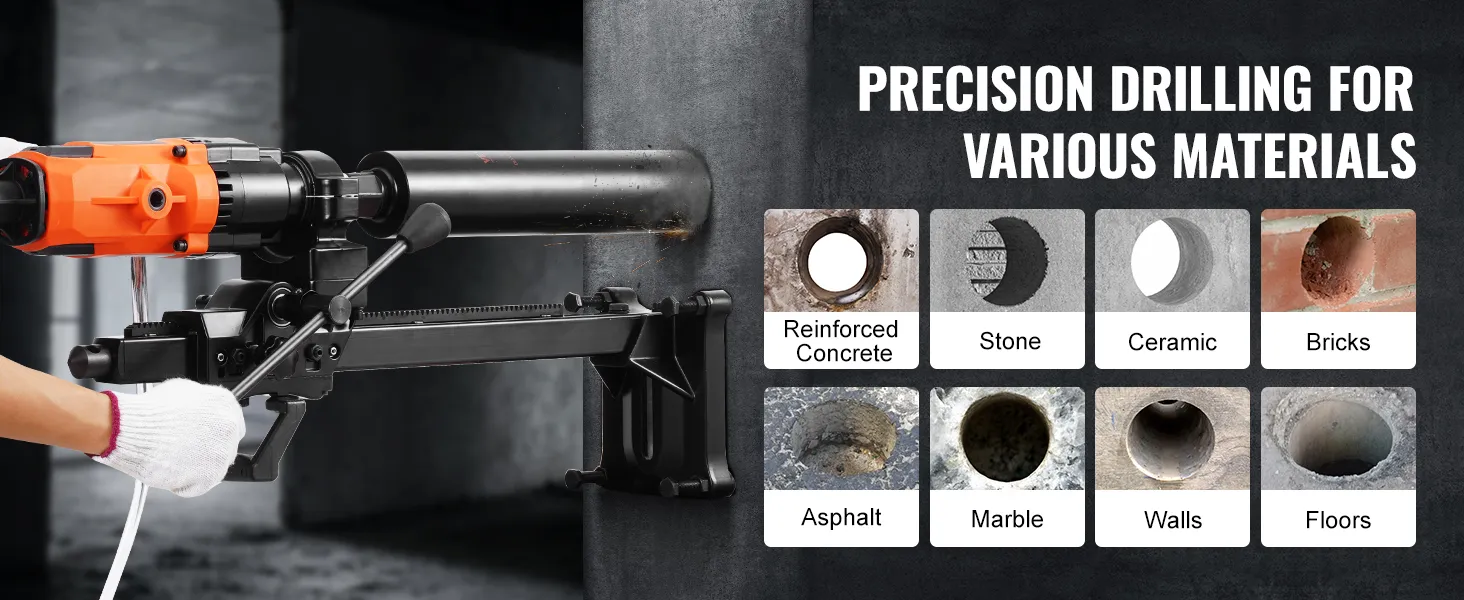 Engineered for Precision Drilling: The coring drill is designed for easy operation when drilling through reinforced concrete, red brick, marble, and more. It meets professional standards and is versatile enough for various tasks like installing air conditioners, kitchen pipes, stair railings, and even highway maintenance.
