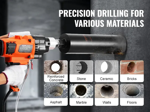 Ontworpen voor precisieboren: De kernboor is ontworpen voor eenvoudig boren in gewapend beton, rode baksteen, marmer, enz. Hij voldoet aan professionele normen en is veelzijdig genoeg voor verschillende taken, zoals het installeren van airconditioning, keukenleidingen, trapleuningen en zelfs snelwegonderhoud.