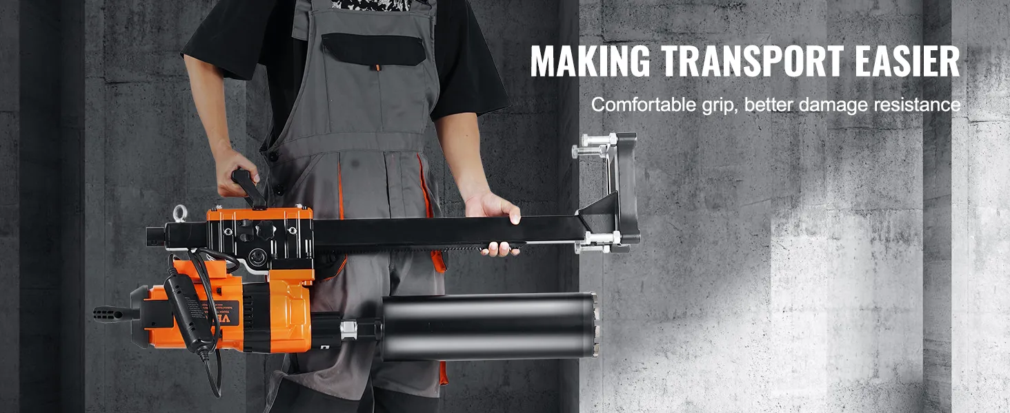 The ergonomic handle design makes it easy to use on job sites while ensuring the core drill rig is safe and stable during transport and storage. It effectively prevents damage from bumps during transportation.