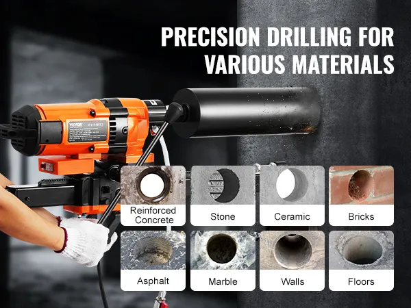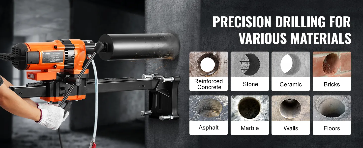 Engineered for Precision Drilling: The diamond concrete core drill is designed for easy operation when drilling through reinforced concrete, red brick, marble, and more. It is particularly suited for large-scale professional projects, such as installing air conditioners, kitchen pipes, stair railings, and even highway repairs.