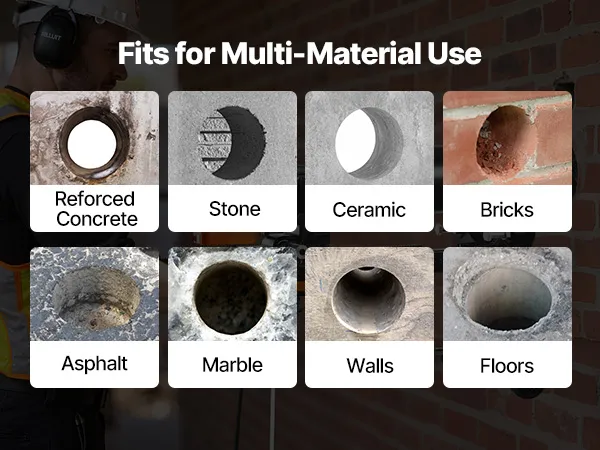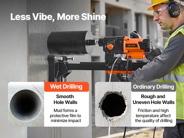 Superieure boorgatkwaliteit: Onze diamantkernboormachine maakt zowel nat als droog boren mogelijk. Bij nat boren worden vuildeeltjes weggespoeld en wordt de boorkop gekoeld met water. Dit vermindert stofvorming en verbetert de gladheid van het boorgat – ideaal voor renovatiewerkzaamheden binnenshuis.