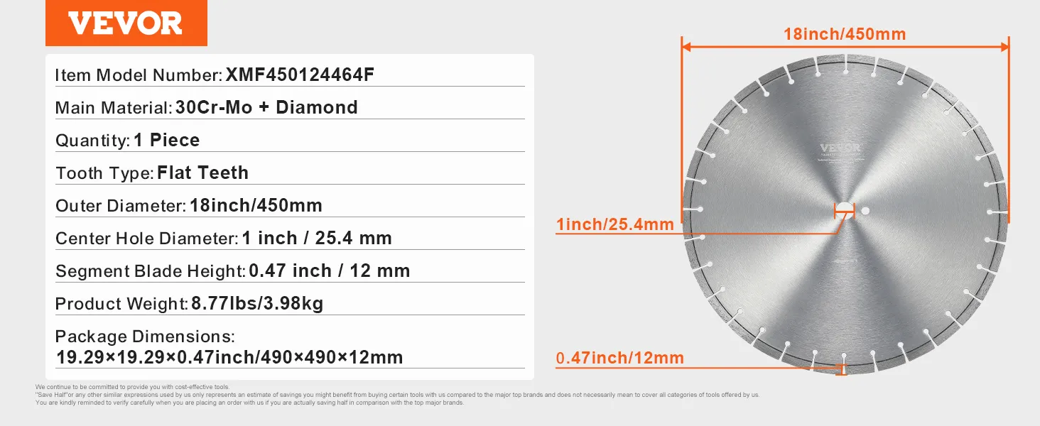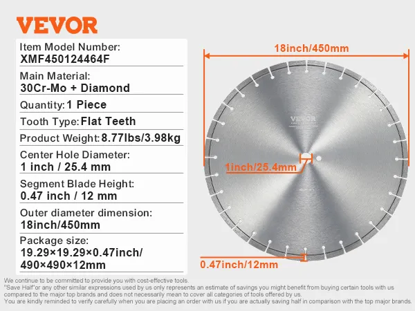 Efficient and Stable Performance: The flat-tooth design provides high cost-efficiency, speed, and cutting precision. The concrete saw blade achieves high-precision cuts with clean, burr-free edges. The 0.47-inch widened segments further enhance durability, ensuring fast and stable cutting over extended periods without the need for blade changes.
