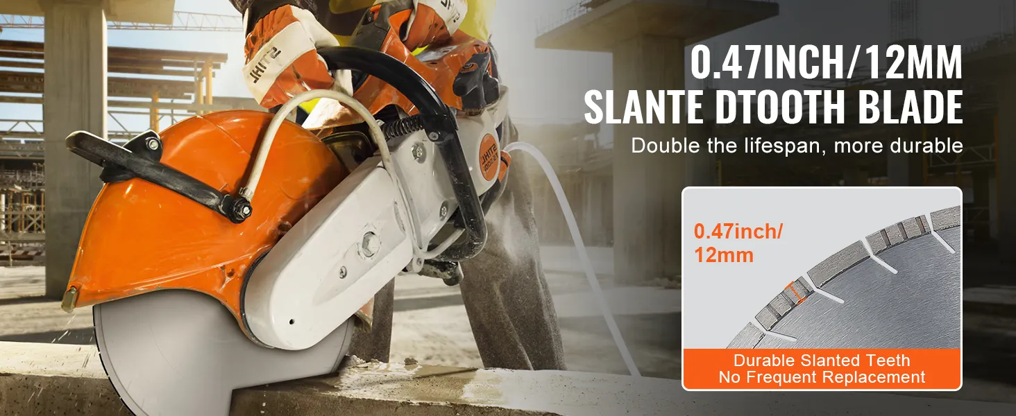 • Safe and Tooth-Damage Resistant: The diamond segments of the concrete blade are laser-welded to the blade body, creating an integrated blade that effectively prevents tooth damage or breakage during cutting, significantly enhancing user safety.