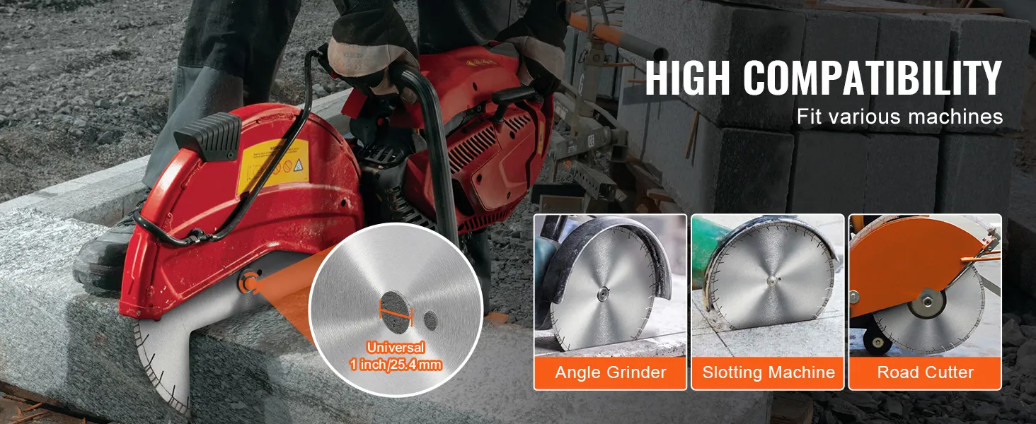 Our concrete diamond blade features a universal 1-inch/25.4mm center hole, compatible with most equipment on the market. Whether for road grooving on construction sites or tile cutting for daily repairs, it adapts easily.