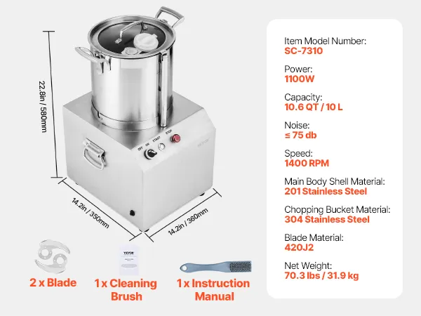 Grote capaciteit: met een hakcontainer van 10 liter (10,6QT) is deze elektrische keukenmachine ideaal voor het verwerken van grote en kleine hoeveelheden en voldoet aan verschillende kookbehoeften.