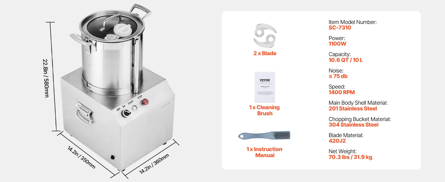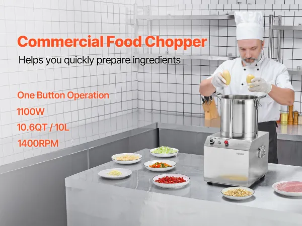 De keukenmachine kan worden gebruikt in restaurants, banketbakkers, privékeukens, hotels, enz. Met de hakmolen kun je gemakkelijk een verscheidenheid aan groenten en fruit fijnhakken.