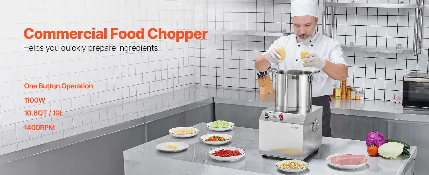 VEVOR Keukenmachine Groentehakker, 10 L Keukenmachine Gemaakt van roestvrij staal van voedingskwaliteit met 2 extra S-vormige messen, Multifunctioneel voor het hakken van groenten, fruit, granen en noten