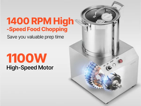 Snel hakken met één druk op de knop: Uitgerust met een motor van 1100 W en een gemiddelde snelheid van 1400 tpm, verwerkt deze keukenmachine en groentehakselaar moeiteloos ingrediënten met verschillende texturen met een enkele druk op de startknop. Dit verkort de bereidingstijd aanzienlijk.