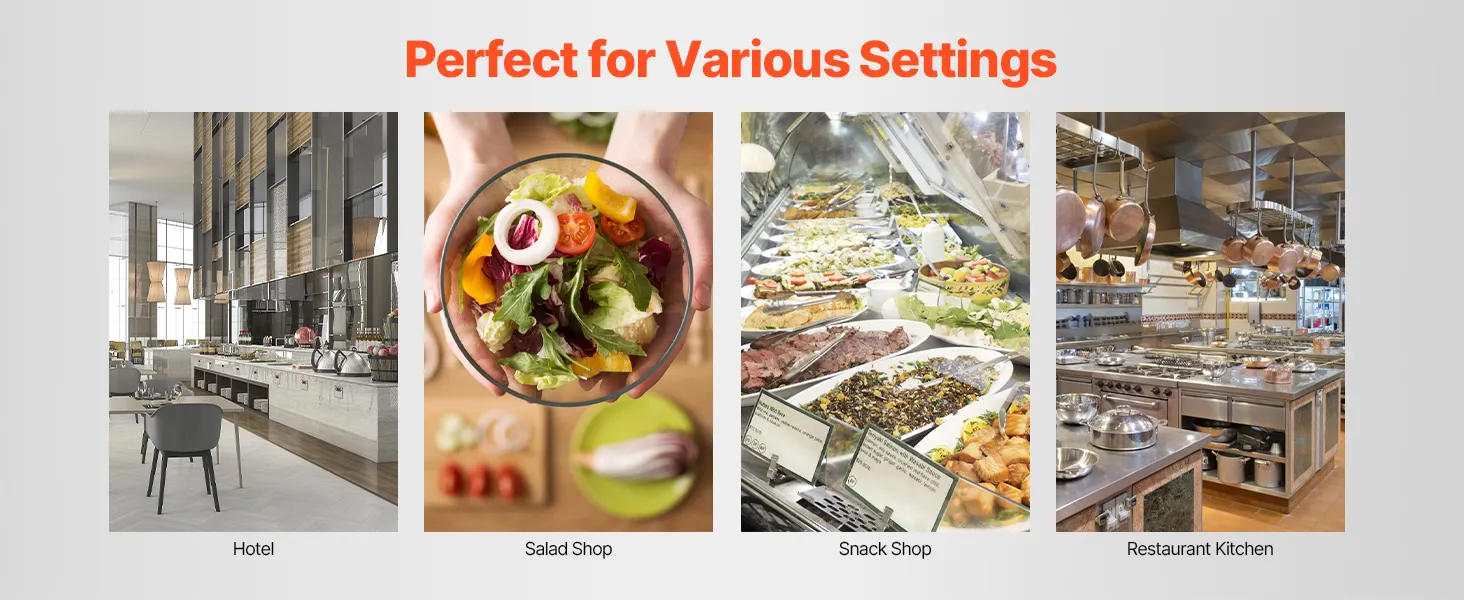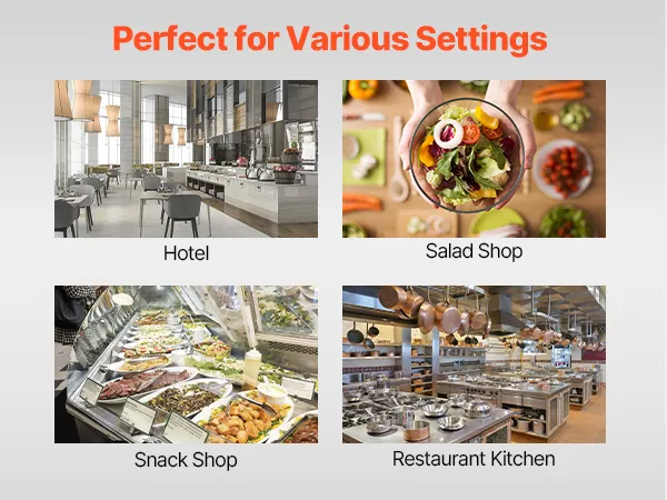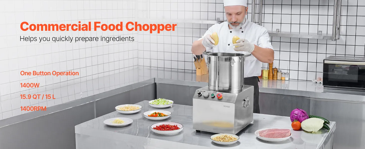 Wide Application: Compact and sleek, this food processor chopper fits easily in any kitchen space, making it ideal for use in hotels, salad bars, snack shops, and restaurant kitchens.