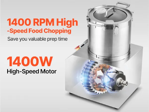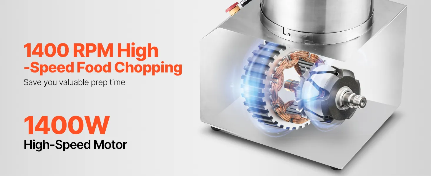 One-Button Quick Chopping: Equipped with a 1400W motor and an average speed of 1400 RPM, this food processor and vegetable chopper effortlessly handles ingredients of varying textures with a single push of the start button. It speeds up prep time significantly.