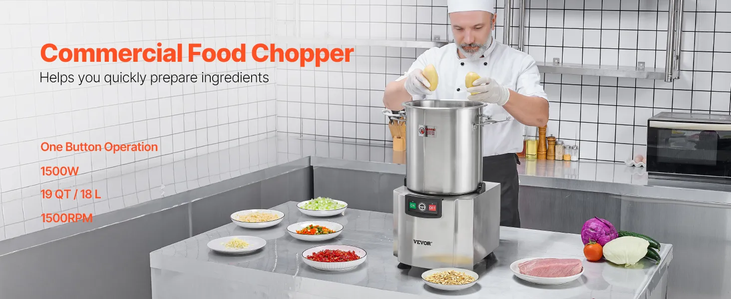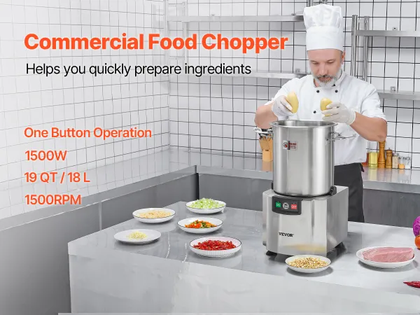 Multifunctioneel: deze commerciële multifunctionele keukenmachine is voorzien van een scherp mes van duurzaam 3Cr13 roestvrij staal. Perfect voor het hakken van verschillende ingrediënten, waaronder groenten en fruit.