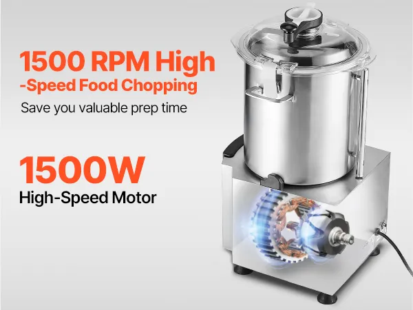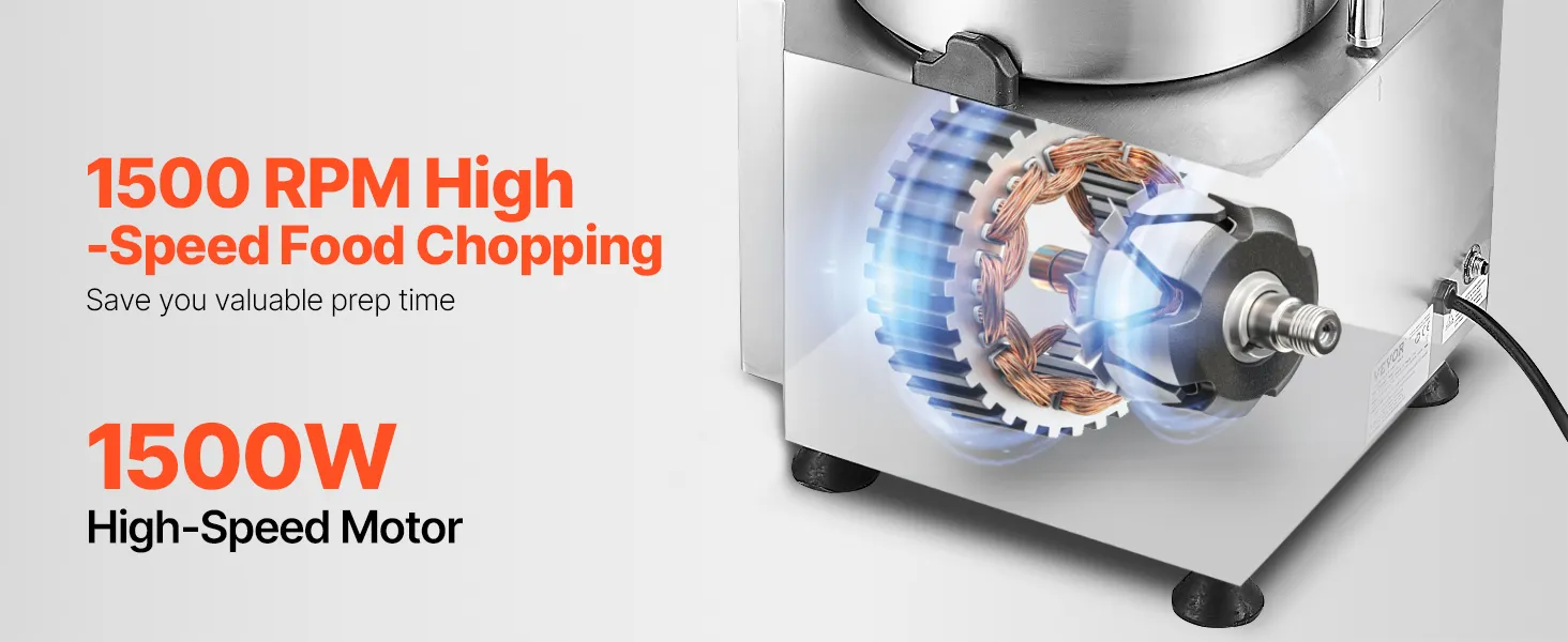 Snel hakken met één druk op de knop: Met een motor van 1500 watt met een gemiddelde snelheid van 1500 tpm en een scherpe roterende schraper verwerkt deze keukenmachine en groentehakselaar moeiteloos ingrediënten met verschillende texturen met slechts één druk op de startknop. Dit verkort de voorbereidingstijd aanzienlijk.