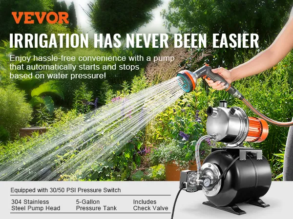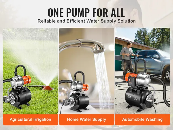 Ideaal voor landbouwirrigatie, huishoudelijke watervoorziening, industrieel gebruik en commerciële systemen. Onze waterdrukverhogingspomp met druktank beschikt over een stabiele druk en stroom.