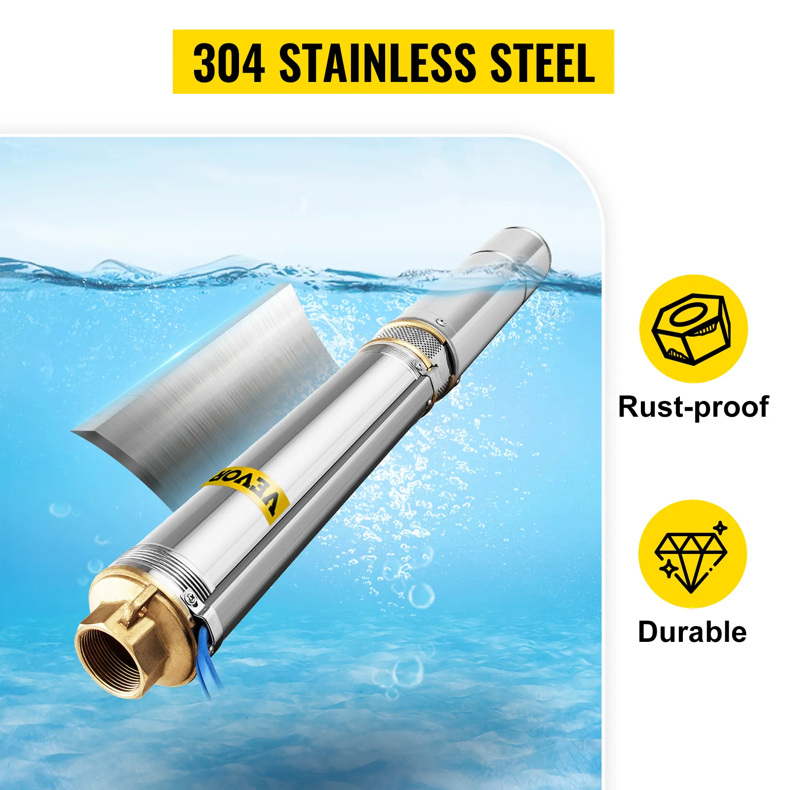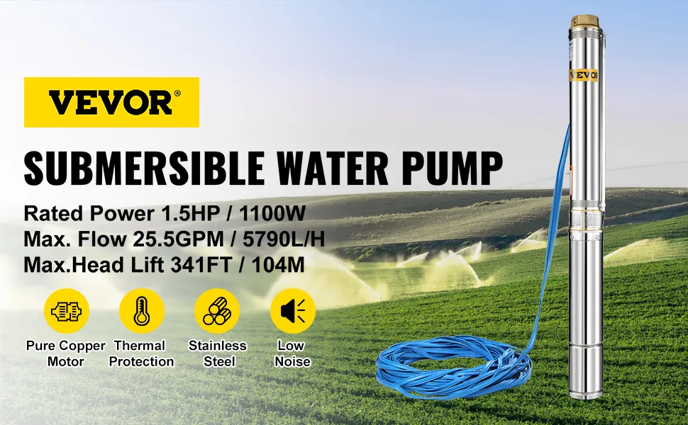 Met deze krachtige dieptepomp kunt u ook vanaf grotere diepten snel en comfortabel water geven. Deze dompelpomp, vervaardigd uit 304 roestvrij staal, is een duurzaam werkpaard dat u jarenlang in beweging houdt. De 1,5 HP diepe bronpomp biedt u een toonaangevende stroomsnelheid en produceert een consistent debiet tot een duizelingwekkende diepte van 40 m onder het oppervlak.
